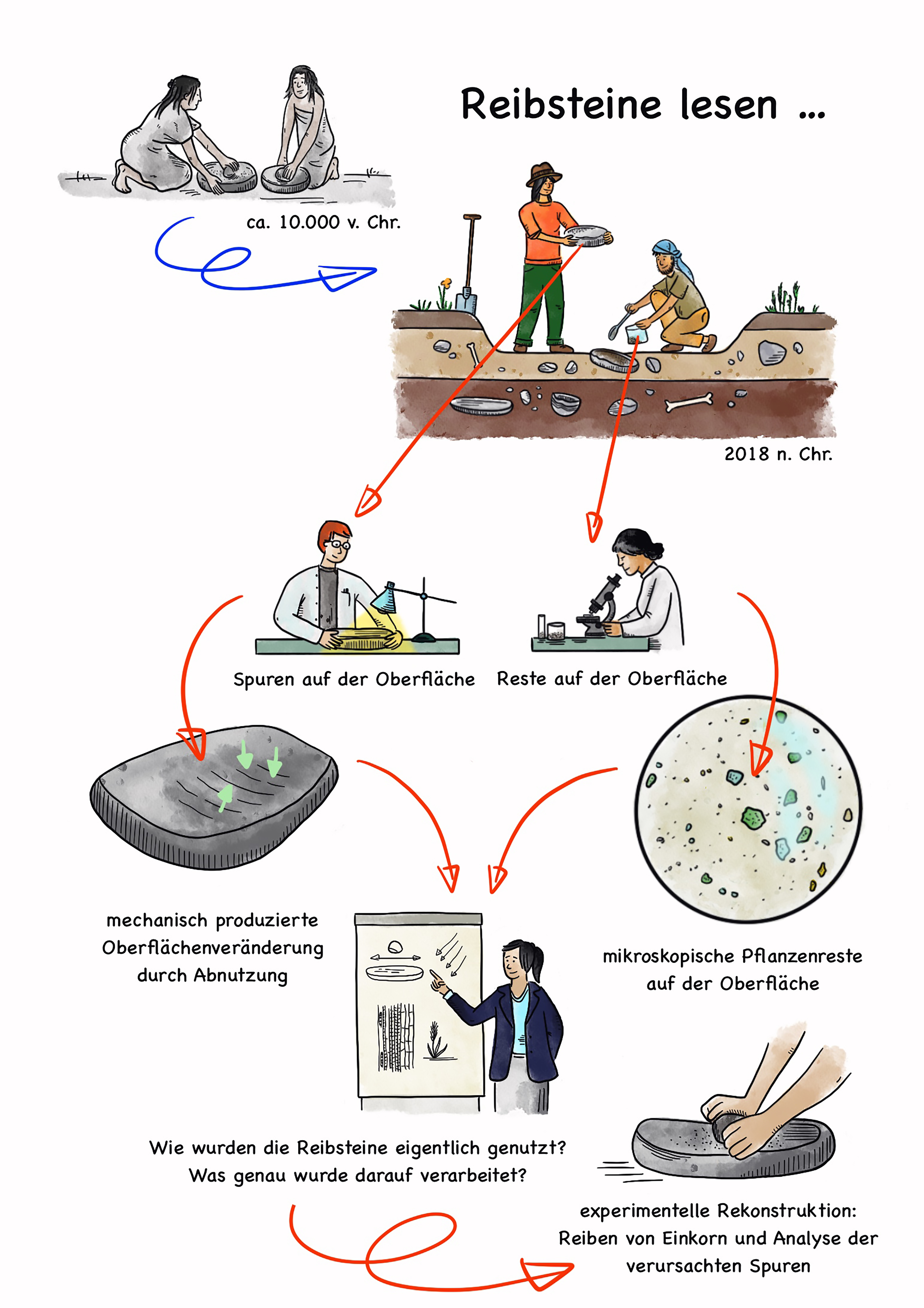 Illustrations of current approaches and basic methods in archaeological research regarding past environmental change, human-environment relationship and interaction – and the important role of such data for current climate and climate change research. For a poster exhibition of the German Archaeological Institute’s “Groundcheck” research programme.