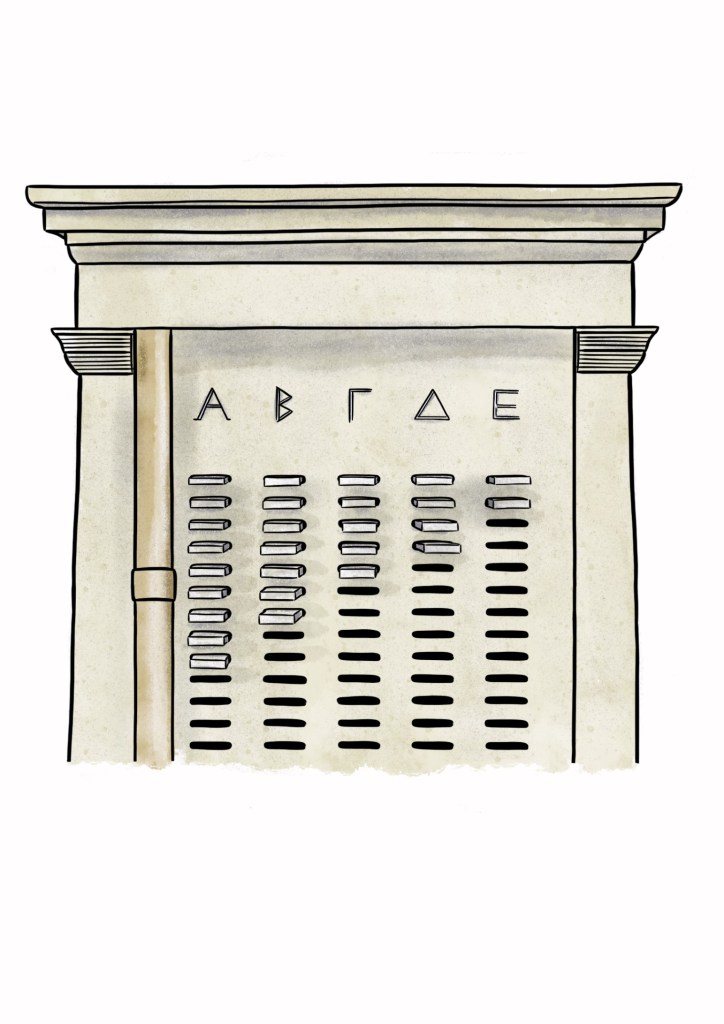Illustrations for and design of two spreadsheets on Ancient Greek democracy for the German Archaeological Institute on the occasion of the festivities in celebration of the 75th anniversary of Germany’s Basic Law.
